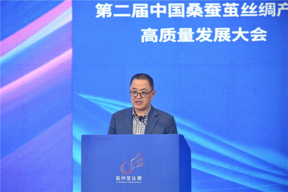 11月25日,,,,,以“河池桑蚕茧,,,,,天下新思绪”为主题的2022中国丝绸大会暨第二届中国桑蚕茧丝绸工业高质量生长大会在广西宜州开幕。。。。。。。。河池市委书记秦春成、中国丝绸协会会长唐琳出席并致开幕辞,,,,,市长王军作《河池市桑蚕茧丝绸全工业生长报告》。。。。。。。。中国丝绸协会副会长、集团董事长周国建受邀作《坚韧不拔强主业、脚扎实地营生长》主题演讲,,,,,并为“天下茧丝绸行业终身成绩奖”获得者们颁奖。。。。。。。。