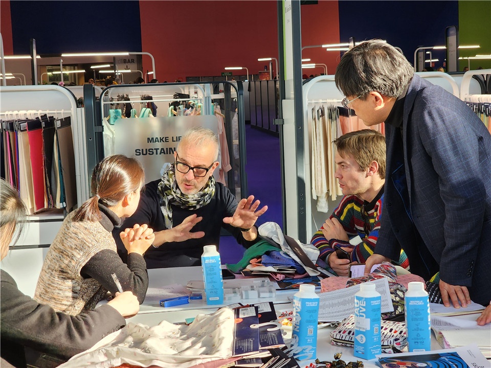 更值得一提的是,,,,,,这次我们所带的产品有大宗的丝绸类高端新产品,,,,,,契合春夏日高端客人对产品的需求,,,,,,这些产品中90%以上是含有环保元素的,,,,,,与目今纺织产品可一连环保理念相符。。。。。。。。理念与设计的碰撞,,,,,,让本次参展产品中的8款产品被组委会专家团队选为盛行趋势样本产品。。。。。。。。